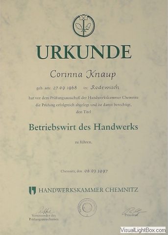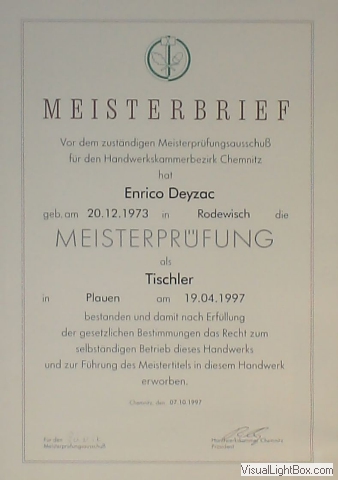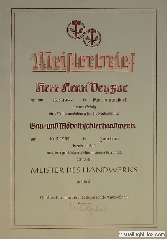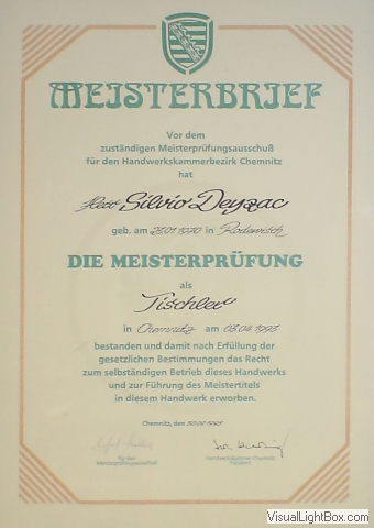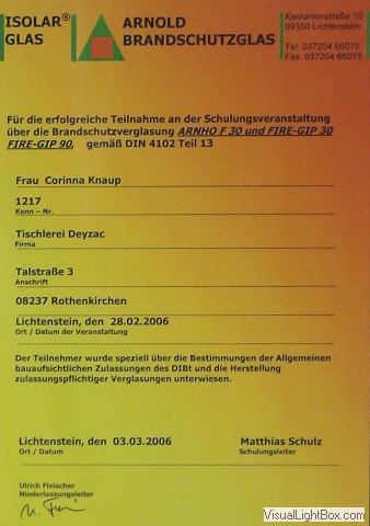 Meisterbrief von Henri Deyzac Meisterbrief von Silvio Deyzac Meisterbrief von Enrico Deyzac Betriebswirt von Corinna Knaup Zertifikat Brandschutzglas